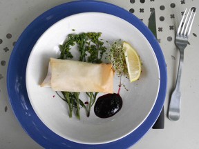 Je crois que l’ensemble est une très bonne association.La brick est disposée sur des tête de coniza canadensis, fleur commune.Je les ai fait bouillir quelques minutes dans l’eau et agrémenté du jus de citron. D’après un bon conseil du « manifeste gourmand » dont j’ai tiré l’inspiration, le citron est intéressant pour découvrir un nouveau goût; il permet aux papilles de se rattacher à une référence gustative connue, le citron, qui n’efface pas pour autant la saveur du nouvel aliment. à retenir…